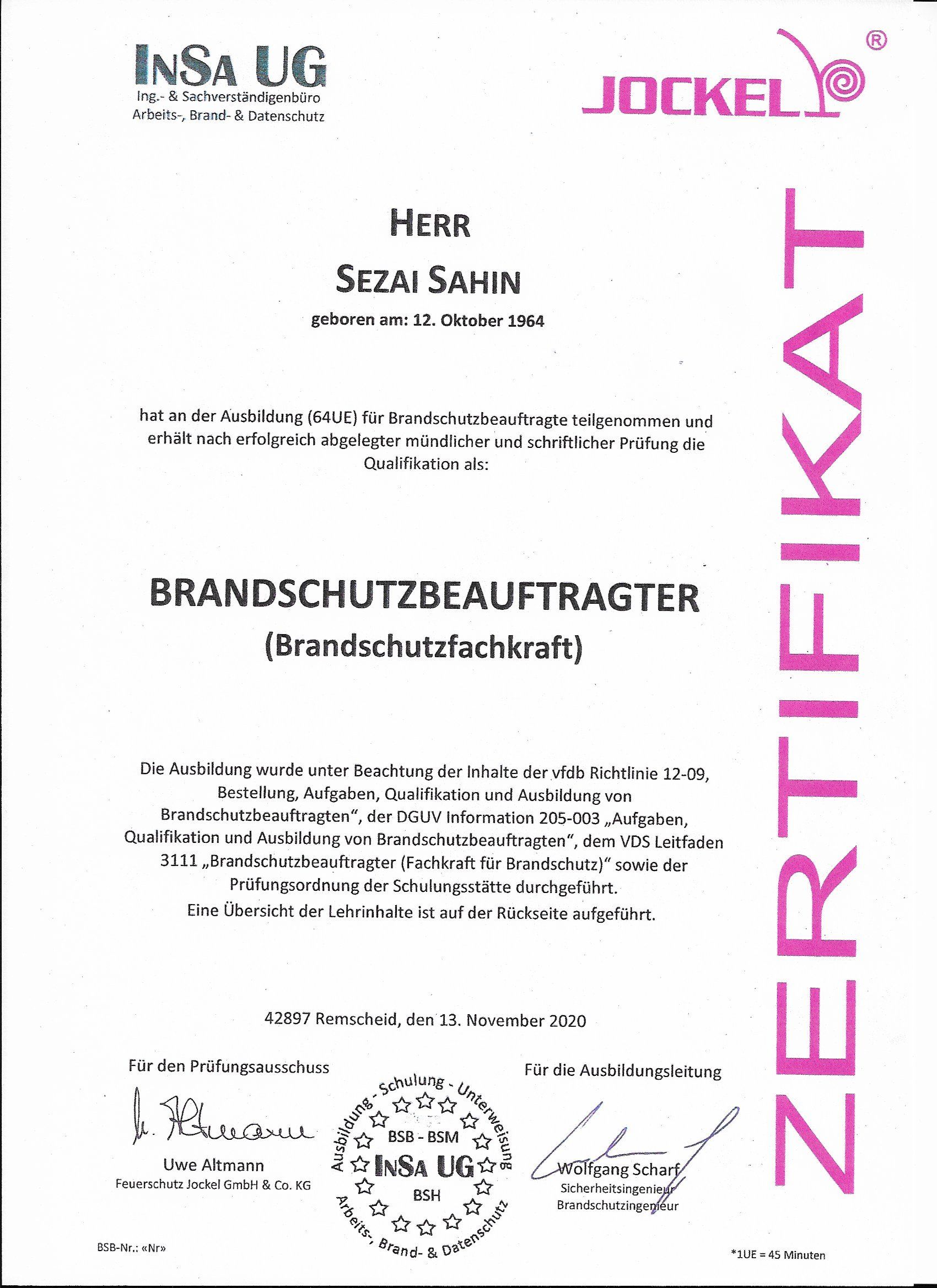oder IHK geprüfte Werkschutzfachkraft, Fachkraft für Schutz- und Sicherheit, Werkschutzmeister oder Meister für Schutz-und Sicherheit.